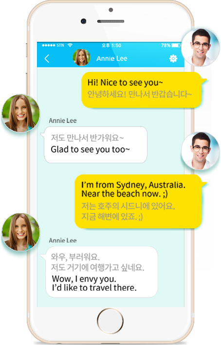 코코넛라이브는 메시지 자동번역 기능을 제공합니다. 이제 외국어를 잘 못해도 외국 친구와 원하는 메시지를 마음껏 주고받을 수 있습니다.